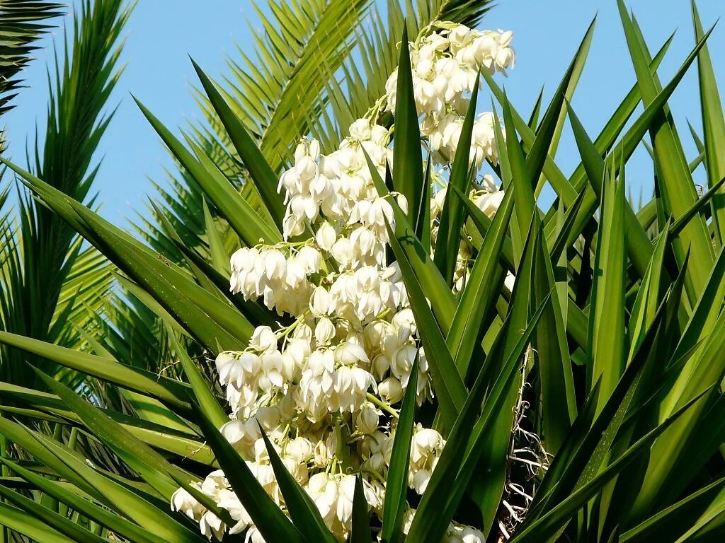 Пальма Юкка цветет.