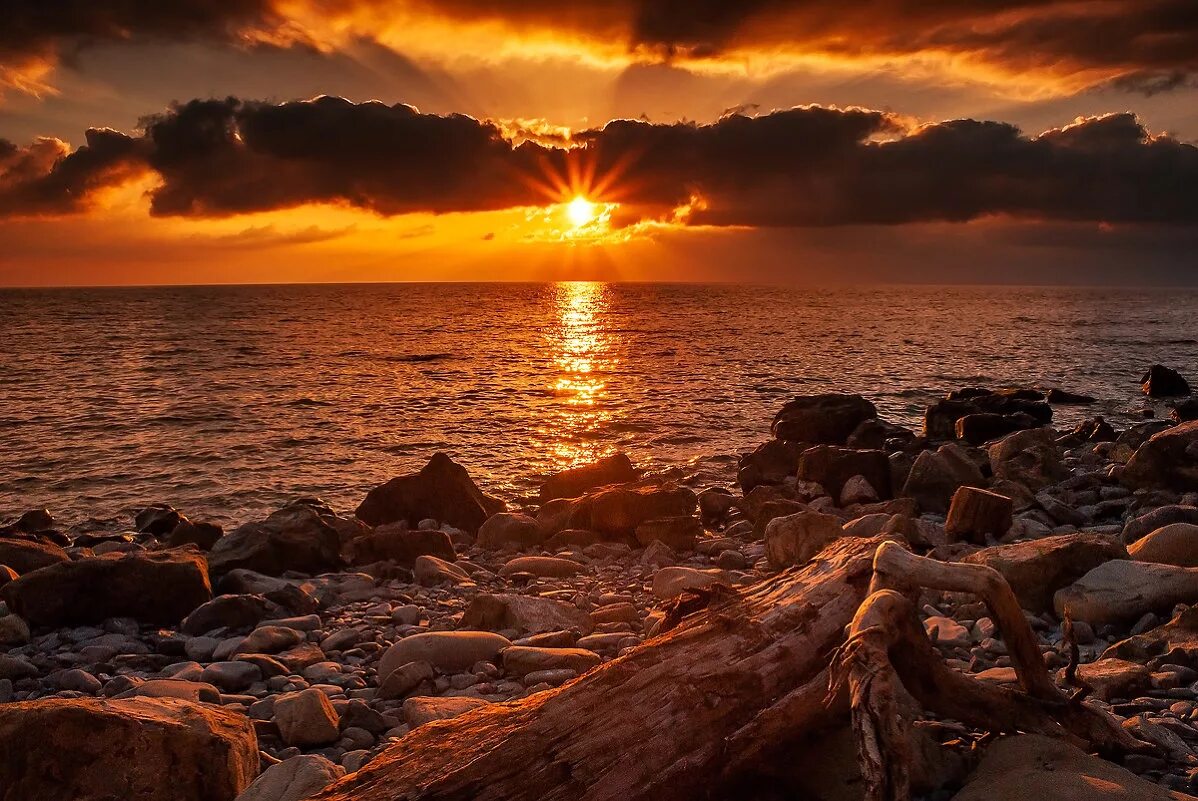 Красивый закат на море.