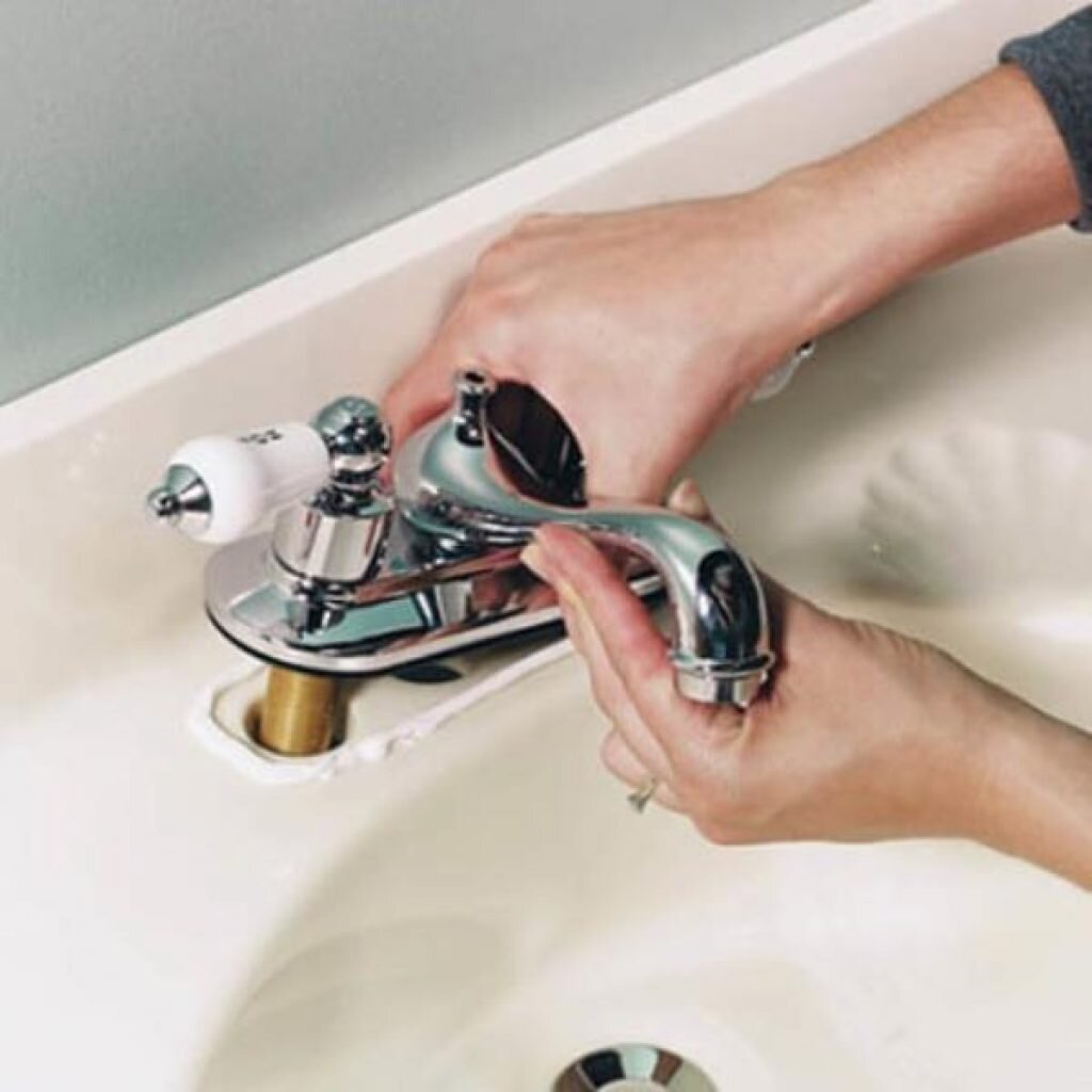 Монтаж крана на раковину.