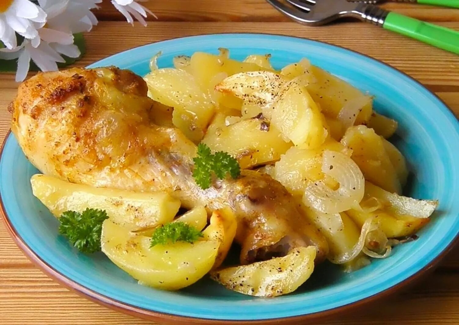 Курица с картошкой в духовке.