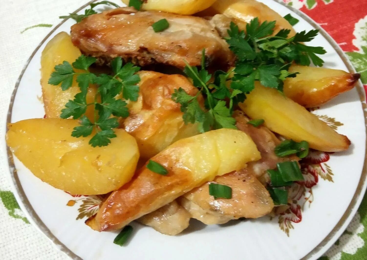 Курица запечённая в духовке с картофелем.
