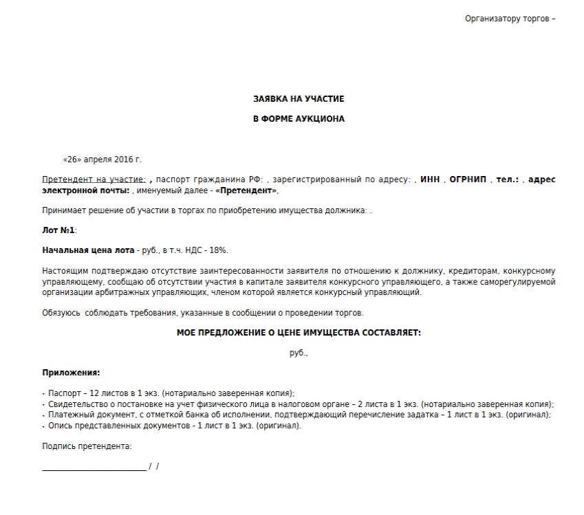 Заявка на осмотр имущества на торгах по банкротству образец фото