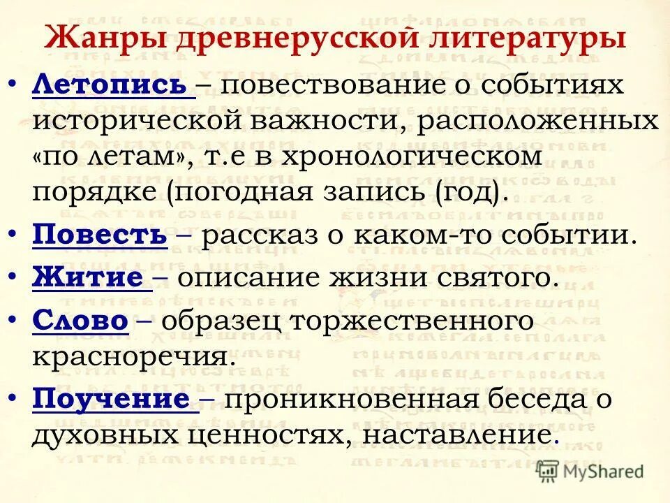 Жанры древнерусской литературы