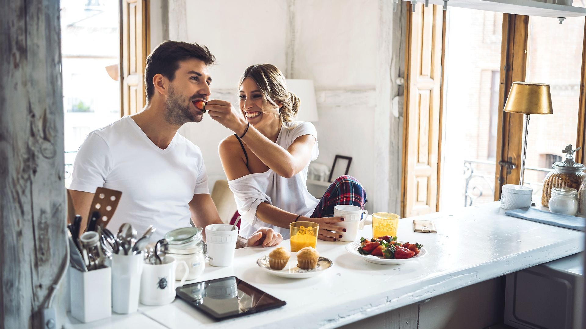 Мужчина и женщина завтракают.