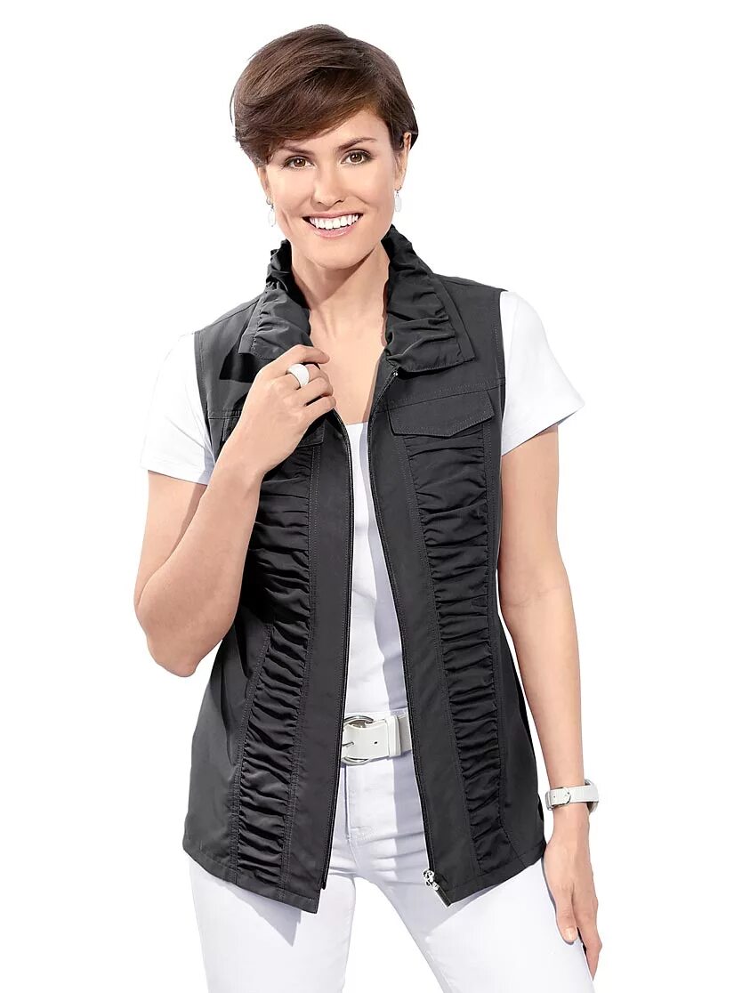 Женщина в жилетке.